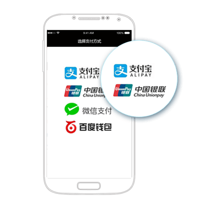飞焰支付,为iOS/Android原生/H5 App提供支付解决方案:支持微信支付、支付宝支付、银联手机支付、百度钱包等。